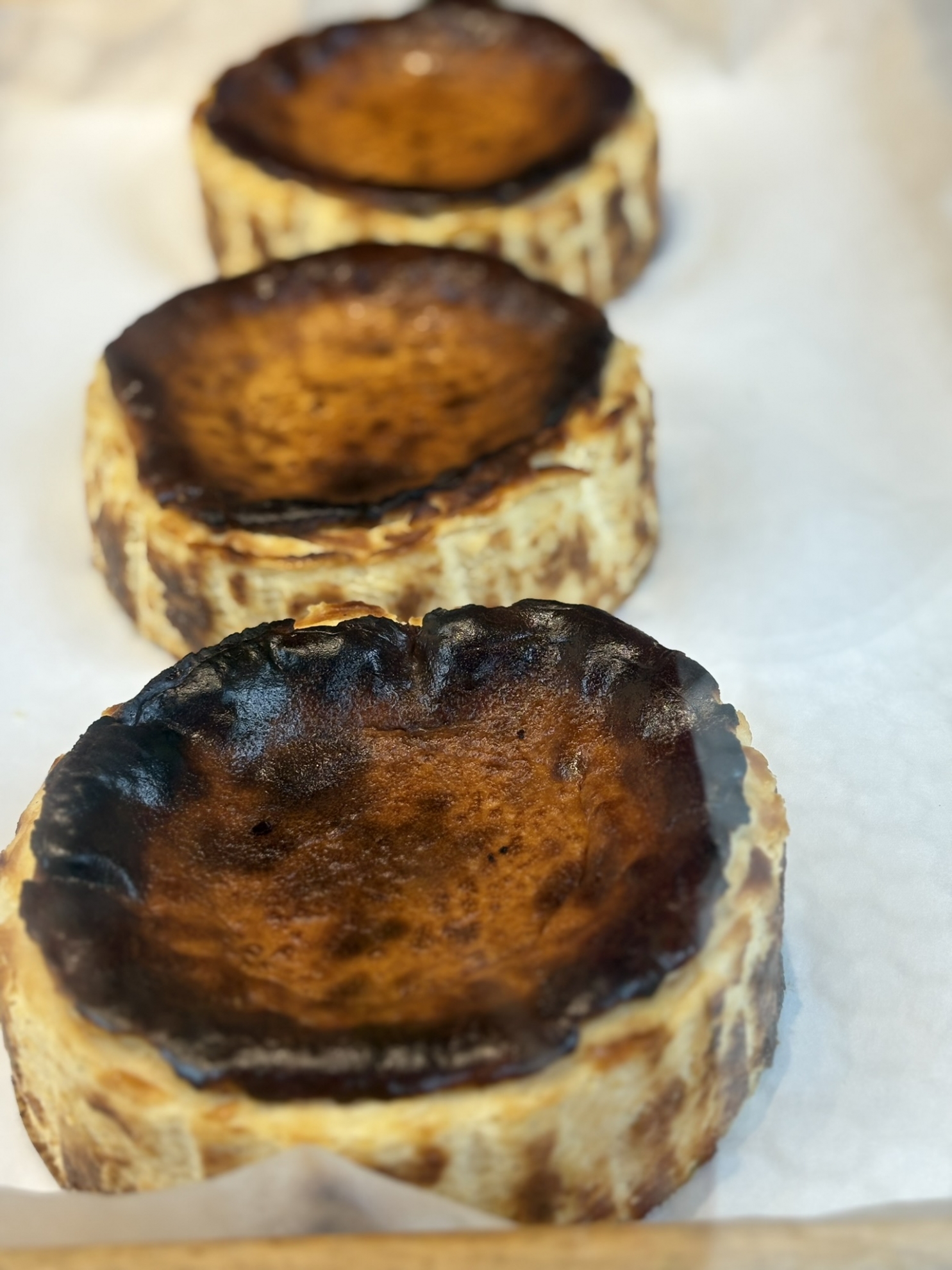 Cheesecake basca, o bruciata è una torta cheescake cotta senza guscio, con una superficie bruciata che contrasta con un ripieno morbido e cremoso