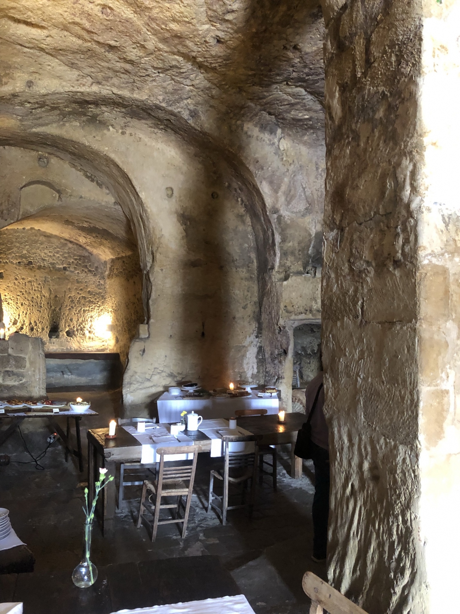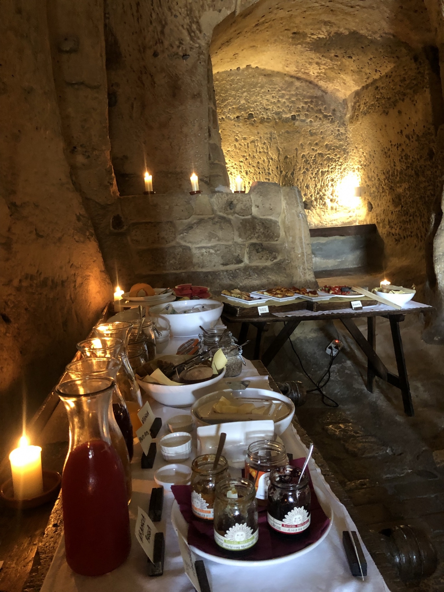 E dopo una notte passata nella grotta, beata come un animale notturno starebbe dentro la sua tana, risvegliarsi al Sextantio per la colazione è un'esperienza sensoriale eccitante.