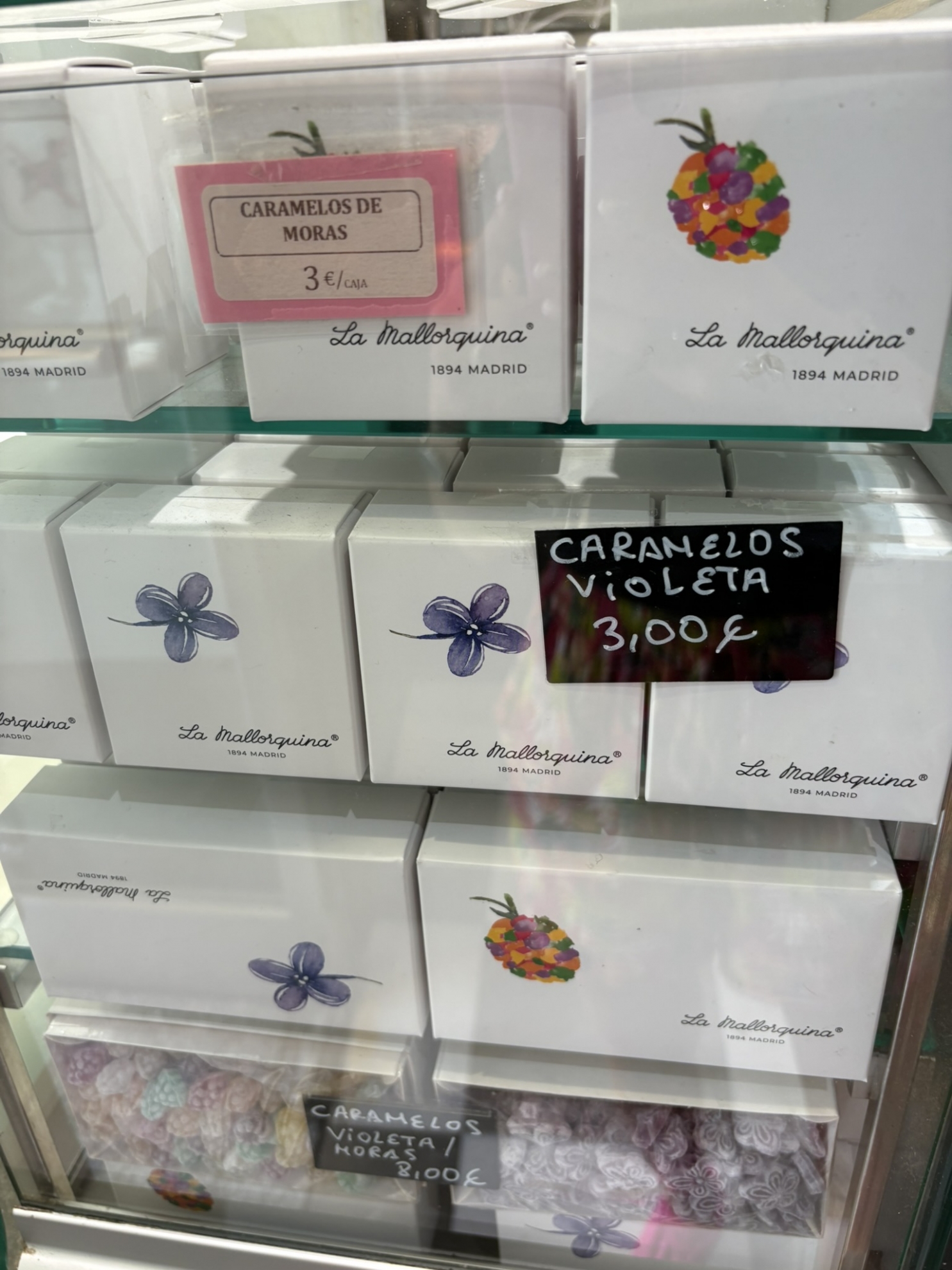 Ma al classico, anzi al simbolo stesso di Madrid, non ho certo rinunciato e non è propriamente un pasticcino ma sono loro: le Violetas, le caramelle alla viola che ora troneggiano nel mio salotto, a portata di mano, a ricordo di quel boccone divino dove mela e crema si sono fuse in un incontro passionale a pochi metri da Plaza Mayor.