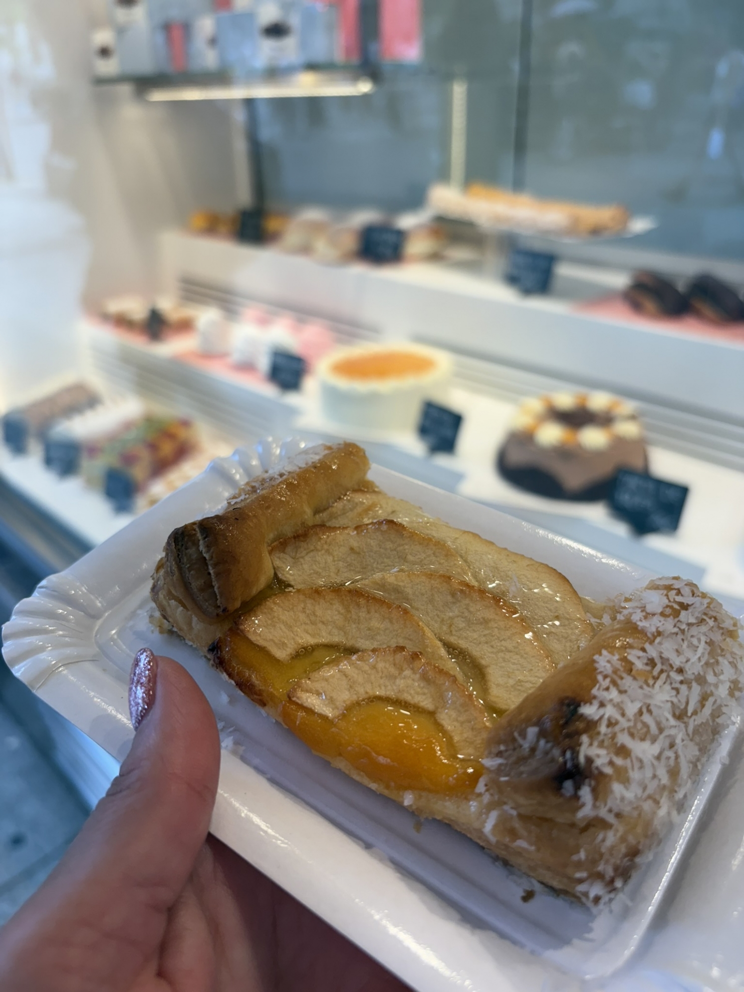 Solo assaggiando il prodotto più semplice, si può comprendere la qualità pura e cruda; ebbene la sfoglia era un incanto sul palato per freschezza e consistenza, la crema scivolava via come i pattini sul ghiaccio e le mele leggermente caramellate si erano trasformate in una melodia di frutta.